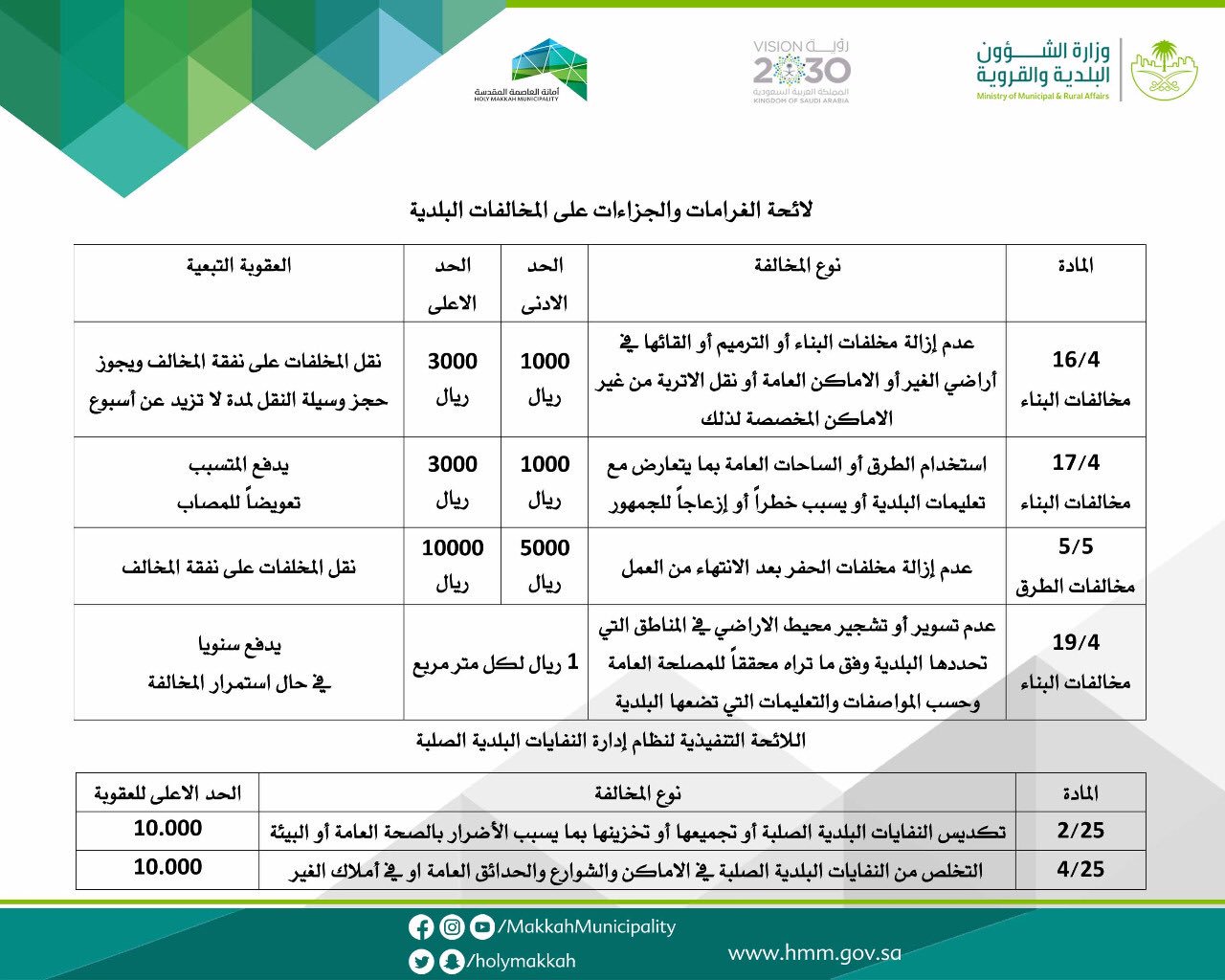 أمانة العاصمة المقدسة On Twitter 5 تطبيق لائحة الغرامات والجزاءات عن المخلفات البلدية واللائحة التنفيذية لنظام إدارة النفايات البلدية الصلبه على المخالفين وتعليمات ايقاف الخدمات على المخالفين الغير ملتزمين Https T Co Uzb7697kbd