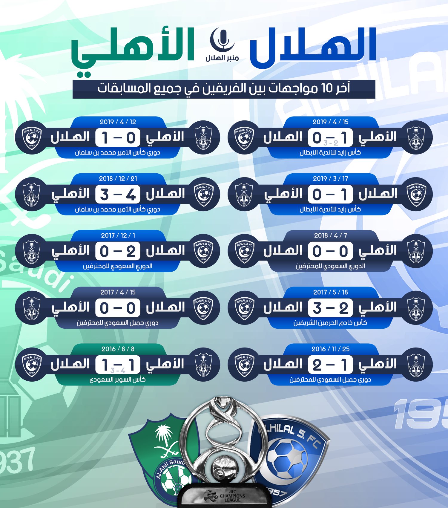 منبر الهلال No Twitter نتائج آخر عشر مواجهات بين الهلال والأهلي